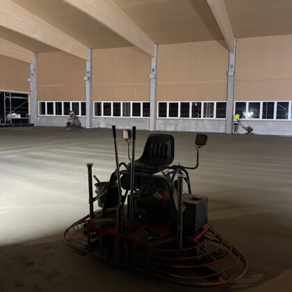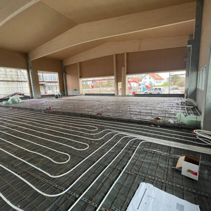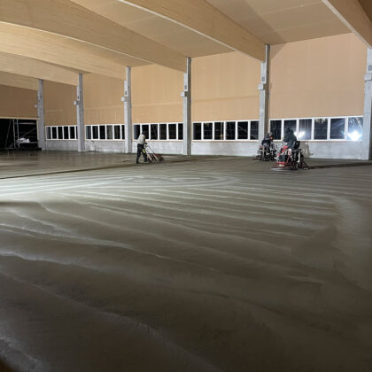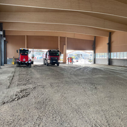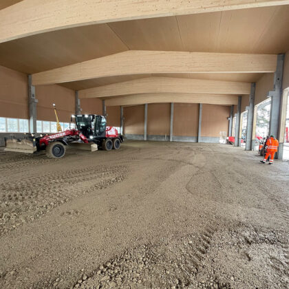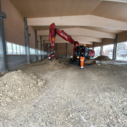Der Baubeginn war durch umfangreiche Baggerarbeiten gekennzeichnet, bei denen wir eine große Fläche für die Grundstruktur der Halle vorbereitet haben. Diese Phase war entscheidend, um ein solides Fundament für die weiteren Bauarbeiten zu schaffen.